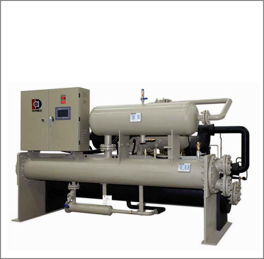 是以水为冷却介质来为空调系统提供冷源的设备,机组制冷量大,可与末端空气处理设备组成大型集中式空调系统。机组由双螺杆压缩机、冷凝器、满液式蒸发器、电子膨胀阀、油分离器及自控元件等组成。与相同冷量的风冷机组相比,由于其冷凝器和蒸发器均采用特制高效传热管,因此结构紧凑,体积小,效率高;又由于没有冷凝风机,因而噪声低。